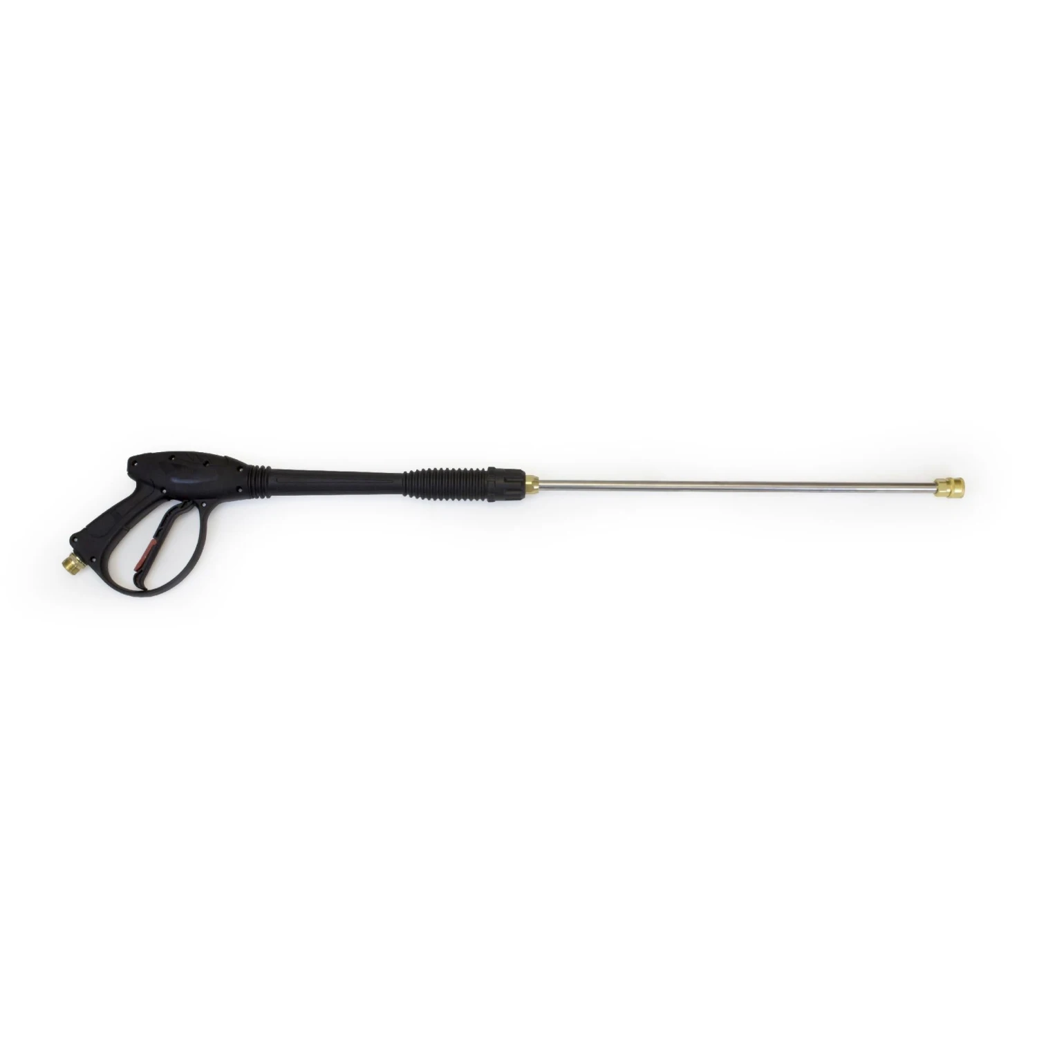 - Features four quick connect nozzles: 0 degrees, 25 degrees, 40 degrees, and soap