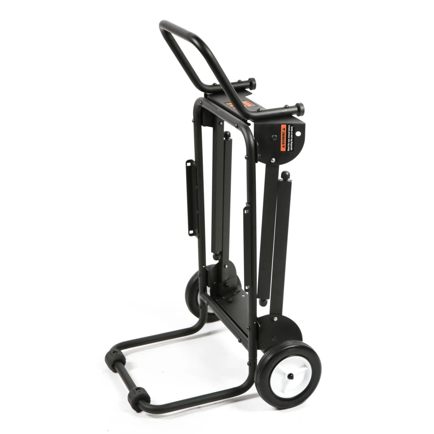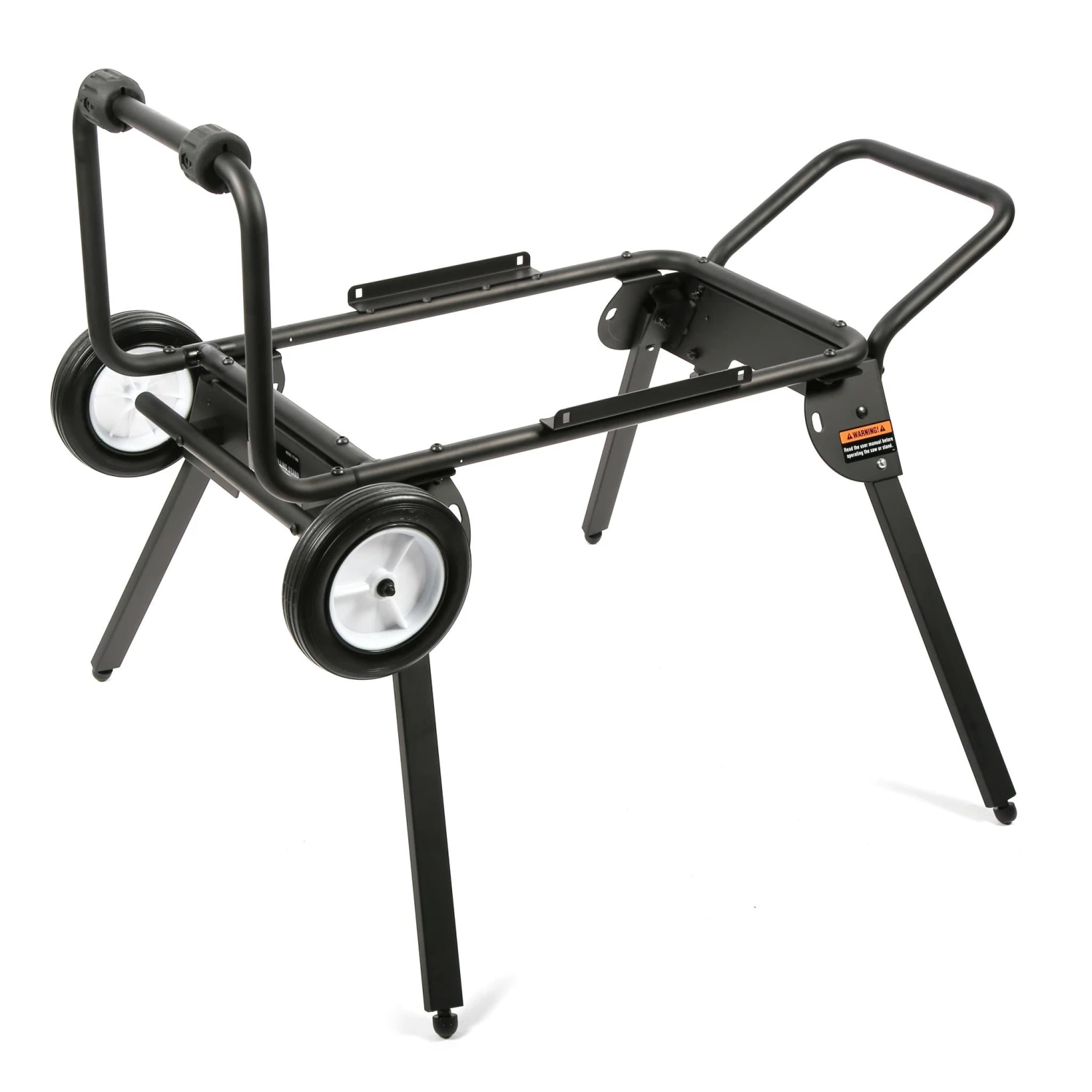 - Heavy-duty rolling stand transforms your benchtop table saw into a mobile jobsite saw